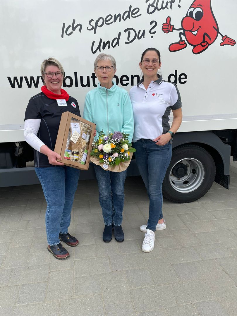 Ganz besonders möchten wir uns bei Frauke Nickels bedanken. Frauke wurde für Ihren 100. Aderlass besonders vom Blutspendedienst Nord-Ost geehrt. Auch vom DRK Ortsverein Jevenstedt gab es dafür Blumen.